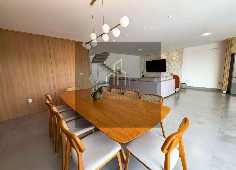 Os ambientes sociais impressionam pela harmonia e integração: sala de estar e sala de jantar com excelente iluminação natural se conectam perfeitamente à cozinha com área gourmet integrada, criando o cenário ideal para receber amigos e viver momentos memoráveis em família.